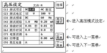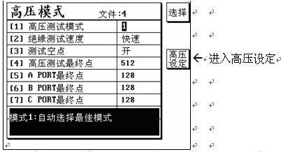 在“设定选单”画面下选择“高压条件设定”按“Enter”键进入