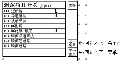 (a) 在“设定选单”画面下选择“测试项目设定”按“Enter”键进入