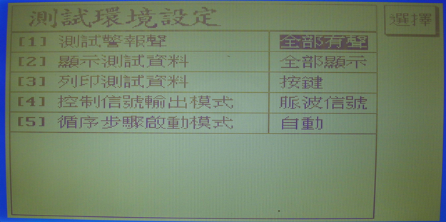 按“Setup”键进入测试环境设定,选择第二项,再确定。如下图: