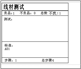 (e) 按S3设定保存,进行线材测试时,按下[TEST],LCD显示画面如下